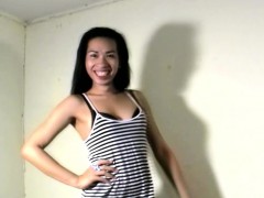 Teen ladyboy Pat dances sexily then she wanks her lovely bon
