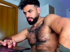 Very hairy daddy strokling his cock