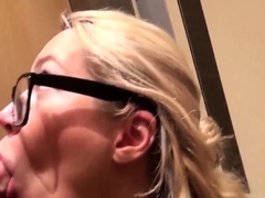 Sensual blonde with big boobs in sexy lingerie does blowjob